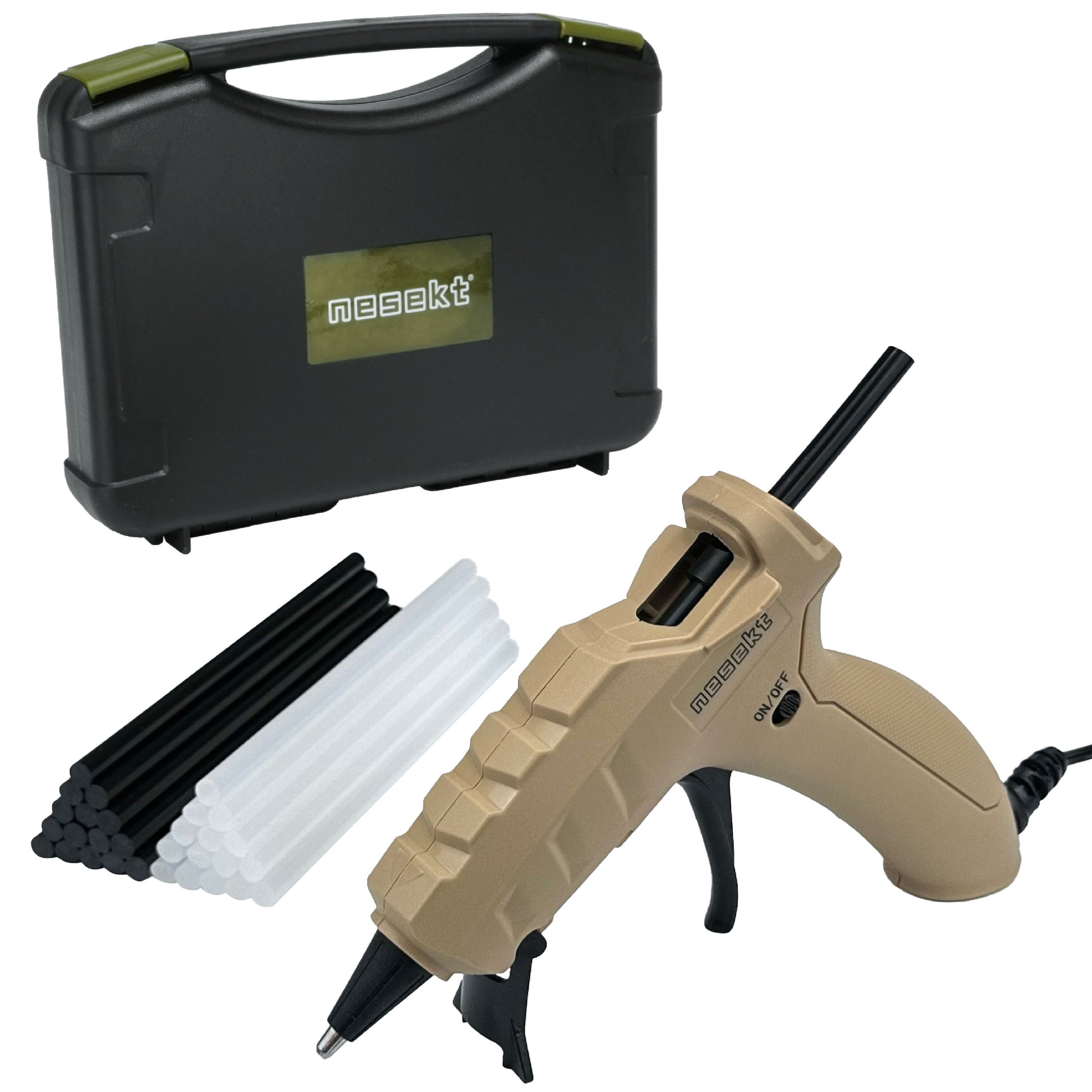 [ネセクト] 強力グルーガンセット AC100V/50W 専用収納ケース グルースティック白&黒 30本付 DIY[1年保証]